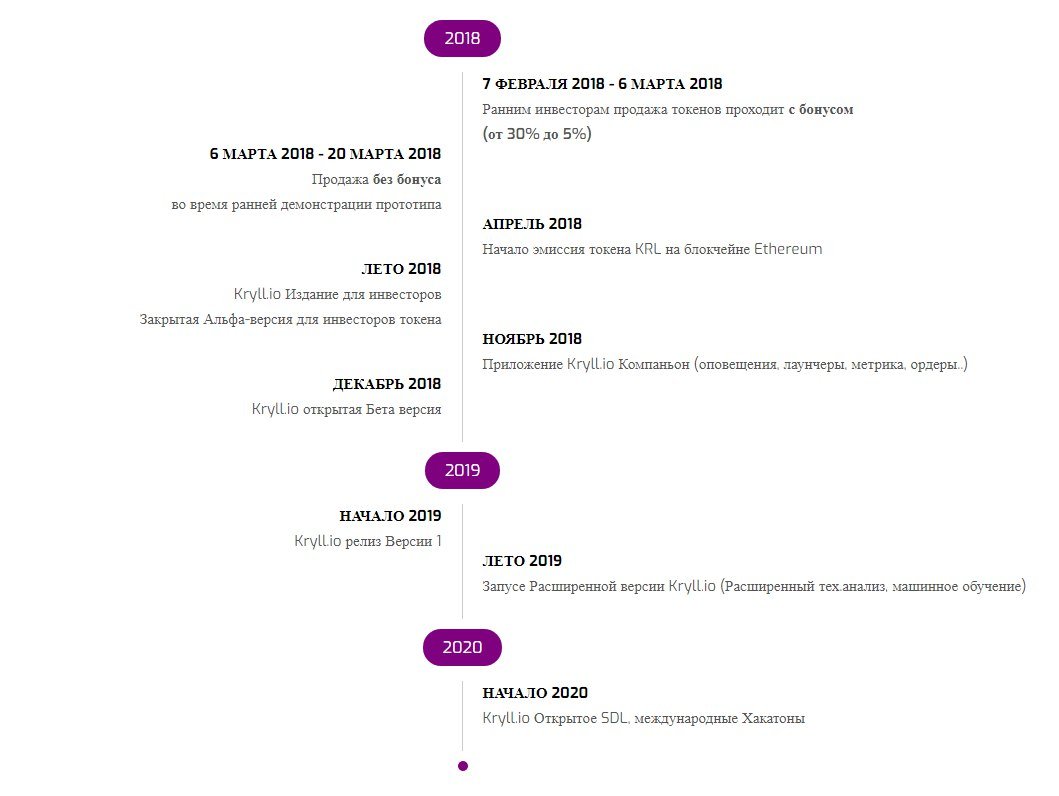 The Kryll platform tokens have the following "KRL" symbol. The issue of tokens is 220 million, their cost is at the stage of ICO 0.2 $. The minimum payment for buying tokens at the moment is 100 USD. Non-distributed tokens will be released, but will be destroyed. The sale of tokens will last from February 7 to March 20, 2018, or until the tokens are fully sold. The maximum amount of fees (Hard cap) is 29 million USD. Purchase of tokens can be made by such crypto-currencies as: bitcoin, Dash, Ethereum and other equally popular crypto-currencies.