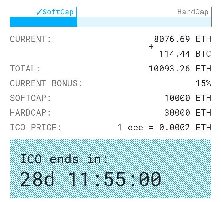 - Цена ICO: 1 EEE = 0,0002 ETH