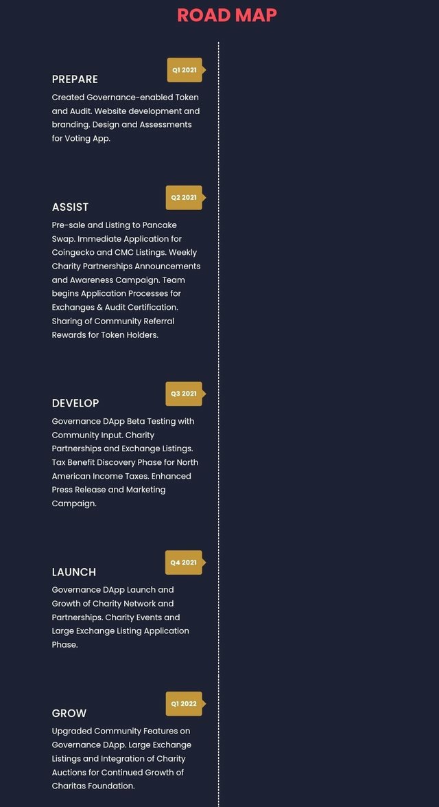 Charitas is a community-based protocol that is revolutionizing the way we fund charities. Our native tokens are made with simple tokenomics: static gifts, charitable donations, auto LP and token burn. investing in Charitas allows holders to manage our upcoming donation platform. charitas is designed with real world goals in mind to ensure the longevity and growth of the protocol.
